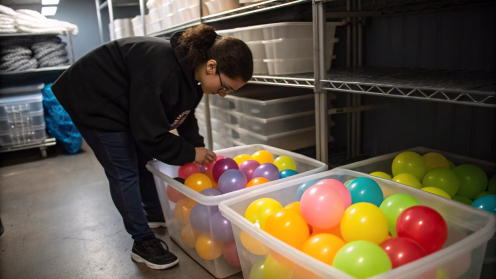 Airtight containers, like plastic storage bins with secure lids or large ziplock bags, are a game-changer. They create a stable environment that shields your inventory from the outside world. I recommend sorting balloons by color and size into separate bags or compartments within a larger bin. This not only protects them but also makes finding what you need incredibly efficient. Imagine preparing for a huge order and knowing exactly where every single color and size is located. It saves time and prevents unnecessary handling of the other stock. For very long-term storage, some businesses even use vacuum-sealed bags11 to remove all air, offering the ultimate protection against oxidation. This simple step of re-homing your balloons is a small effort for a huge return in quality and longevity.